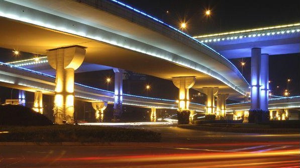道路是城市的動脈。主照明為路燈,滿足行人、車輛夜間行動。庭園燈、景觀燈與路燈形成立體的照明模式,增強道路裝飾效果,美化城市夜景,也可彌補路燈照度的不足。