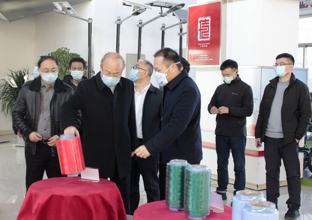 在集團董事長姚湘江等公司高層的陪同下,尹學群市長、張群環市長一行先后參觀了集團展廳和千禧龍纖的生產車間。參觀集團展廳時,尹學群市長、張群環市長一行詳細了解了集團旗下各子公司的產品線,并針對各個系列產品的應用領域、延伸產品等方面,與隨行領導展開討論與交流。參觀生產車間時,則詳細的詢問了復工后的生產情況及現場防疫管控工作的執行情況。在與尹學群市長、張群環市長一行交流的過程中,姚湘江董事長對復工復產后的生產情況逐一進行了匯報,并詳細說明了集團推行的各項防疫措施。