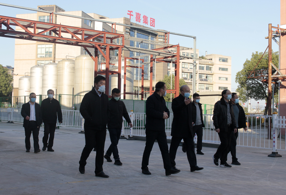 自確定復工日期后,為了讓企業有序推進復工復產進程,并做好疫情防控工作,千喜集團得到了市府部門的大力支持和幫助。近期,金華市市長尹學群一行蒞臨千喜集團,在永康市市長張群環等領導,集團董事長姚湘江等公司高層的陪同下參觀調研。